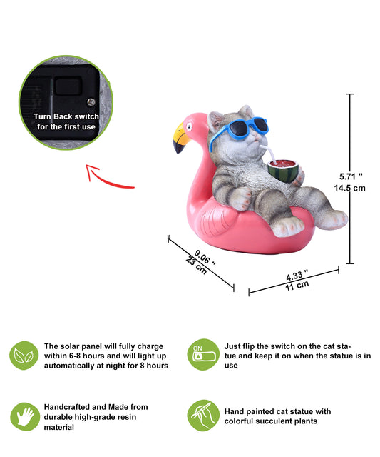 Nacome Cat Lying Flamingo for Garden Statue: Solar Outdoor Decor Figurine for Clearance Outside Lawn Ornaments Porch Patio Balcony – Gifts for Grandma Mom